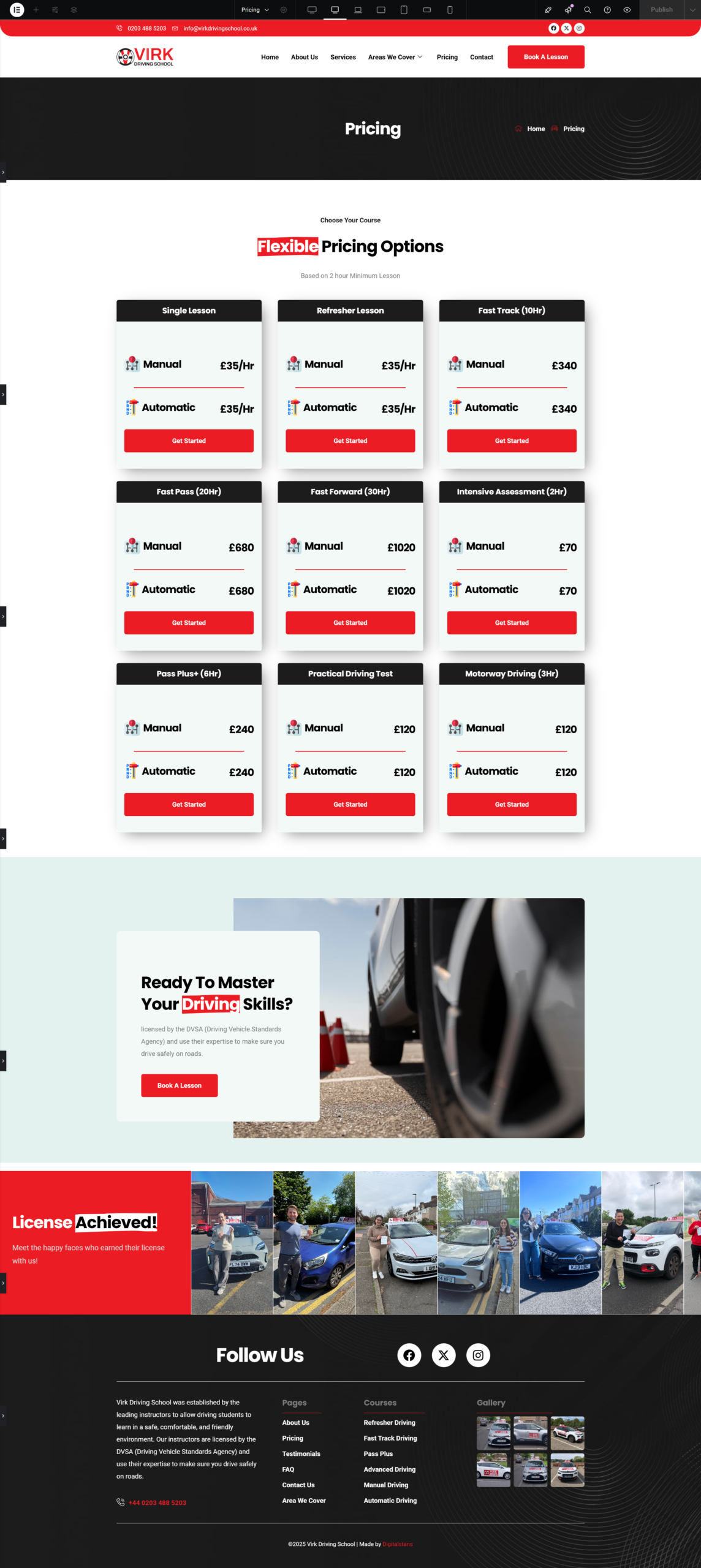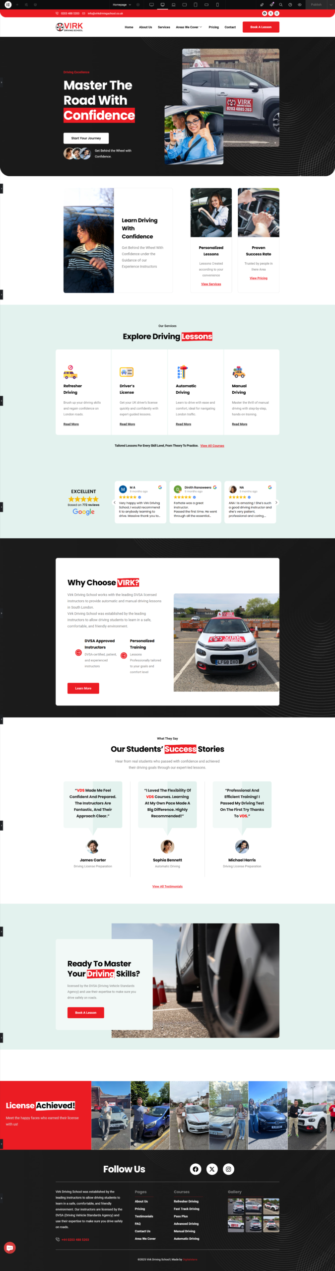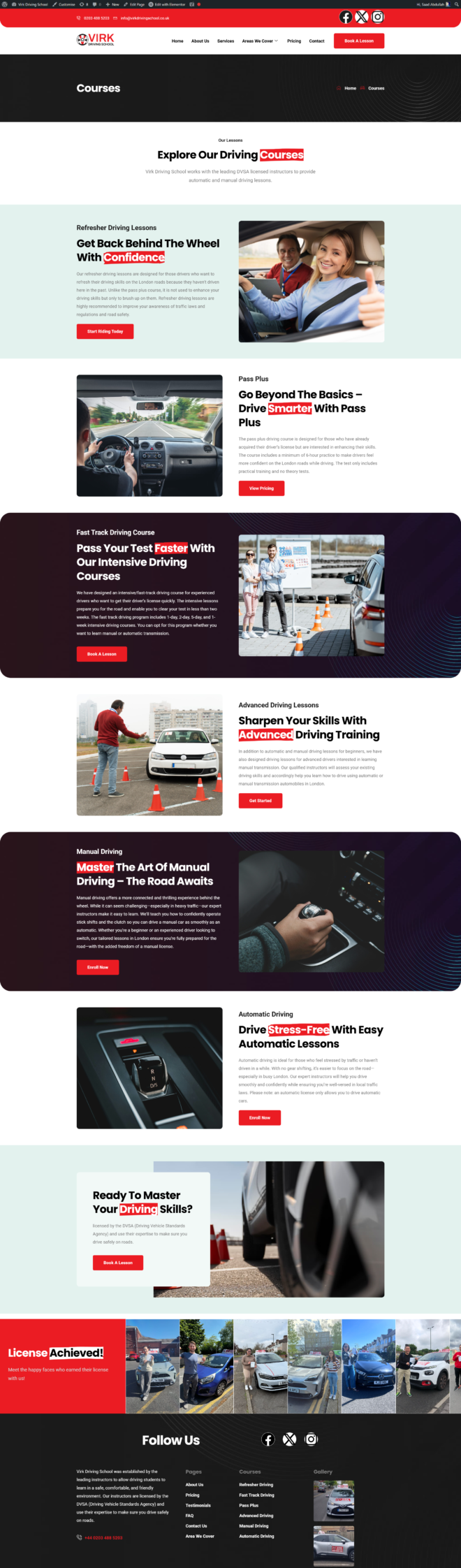 I designed and maintain the Virk Driving School website, building a professional, user-friendly WordPress site that clearly presents their driving courses and services while improving engagement and conversions. Using Elementor with Elementskit Lite, I structured content for easy navigation and visual appeal, integrated MetForm for student inquiries, added Site Reviews for social proof, and optimized the site with WordPress SEO tools for search visibility. Through ongoing maintenance and updates, I ensure the site remains secure, performant, and aligned with the client’s business goals.