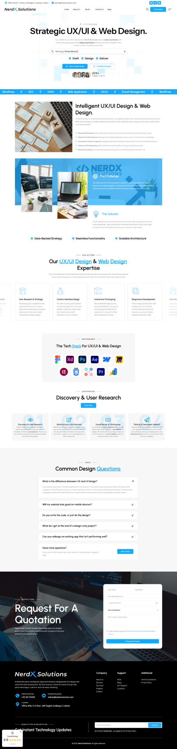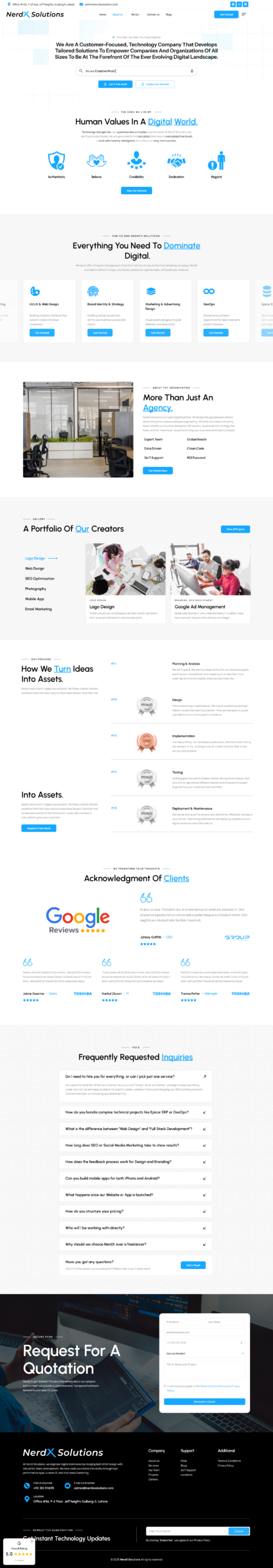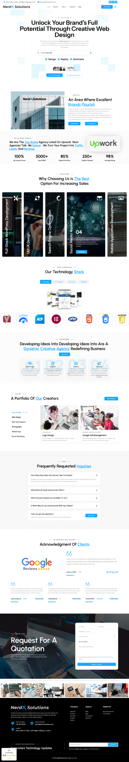 I designed and continue to maintain the NerdX Solutions website, a full-service digital solutions agency based in Lahore that helps businesses grow online through web development, UI/UX design, SEO/SEM, branding, social media marketing, and other digital services. Built with Elementor and Elementor Pro for a modern and responsive layout, and enhanced with Wedesigntech Portfolio to showcase work and LiteSpeed Cache for performance optimization, the site clearly presents services and capabilities while maintaining fast load times and a professional user experience. My ongoing maintenance ensures regular updates, performance tuning, and long-term reliability as the business expands its digital footprint.